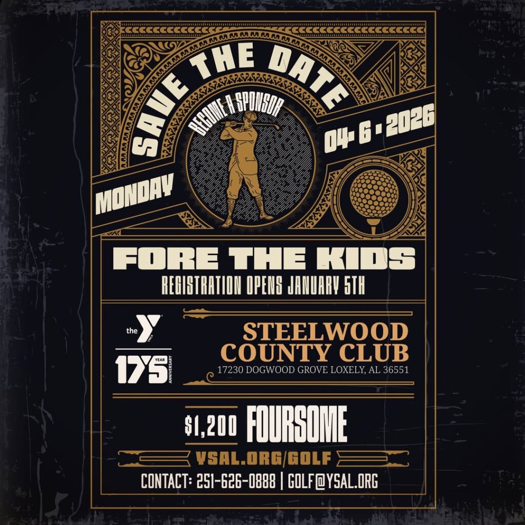 Join us for the 2026 “Fore the Kids” Golf Tournament supporting the YMCA of South Alabama’s mission to strengthen our community through youth programs and development.