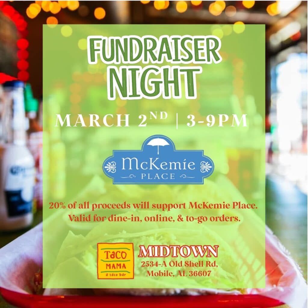 Whether you dine in, order to-go, or place an online order, 20% of proceeds will go directly to McKemie Place in support of women in our community.