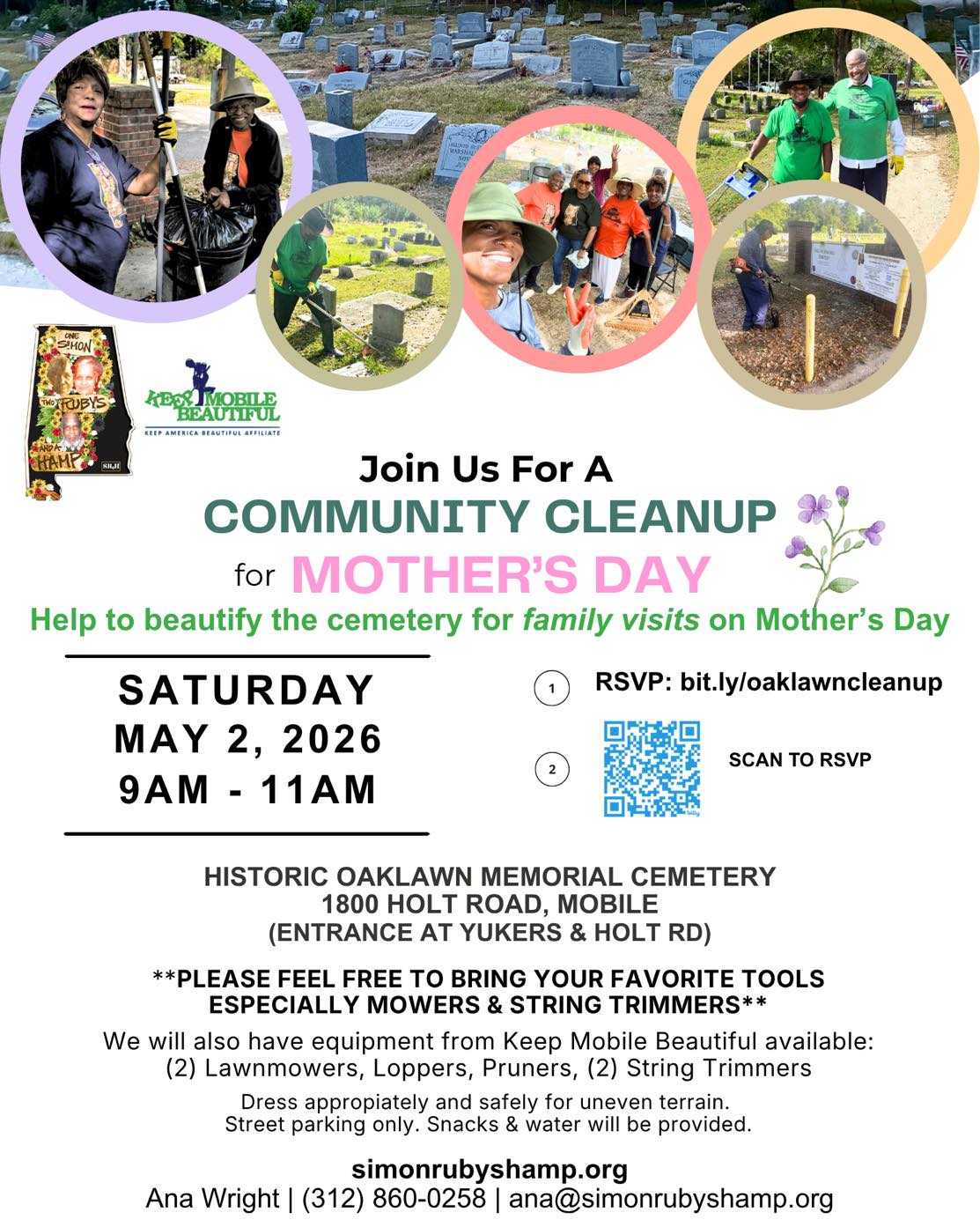 Join Us for our next Community Cleanup of Historic Oaklawn Memorial Cemetery in preparation for family visits on Mother’s Day. Date: Saturday, May 2nd Time: 9AM - 11AM Sign up in advance OR just SHOW UP! Safety glasses, gloves, masks, snacks, water and t-shirts from Keep Mobile Beautiful will be provided. We hope to see ... Read more